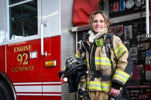 Over my 18 years in the fire service, I’ve served in three different communities. In 2007, I began my fire service journey with the Long Lake Fire Department and then moved to Byron in 2014 and became the first female firefighter within the department. Now since 2017, I’ve worked full-time for the Rochester Fire Department.