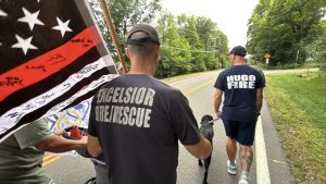 On Sept. 13, Foote and Bode began this walk to inform their fellow fire services members about these resources. And tomorrow, Sept. 21, they will complete their journey at the Minnesota Fallen Firefighter Memorial on the grounds of the State Capitol. Please come celebrate Foote and Bode’s accomplishment as we work to better the health of Minnesota’s fire service. We are expecting them to arrive around 1 p.m.